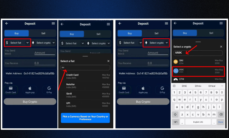 - Choose your fiat currency: Supported options vary depending on your location, but commonly include USD, INR, EUR, GBP, and other region-specific currencies.
