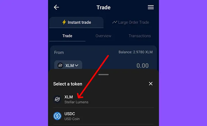 Open the SwiftEx App and tap on the ‘Exchange’ tab from the bottom navigation menu. Now Click on Trade ( under Trade Wallet ). Select ‘Instant Trade’ from the available options from the top.